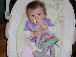 But Grace is doing great! She is rolling over for real now. Gone are the days of letting her lay on the middle of our bed without a fortress of pillows surrounding her. She is also very good at sitting up surrounded by her Bobby or pillows. She is very active and spunky and wants to move. Grace loves tummy time and will complete an entire circle on her belly.